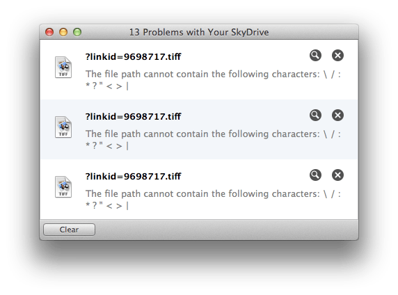 25GB無料に魅かれ、Dropboxから引っ越しをしているところなんだけども、どうもSkyDriveはDropboxにくらべ使ってはイケないファイル名の文字が多いような気がする。自分でファイル名を付けられるものはまだ良いのだけども、Keynoteのようにアプリケーションパッケージ化したファイルの場合、中身のファイル名にSkyDriveで引っかかるファイルを付けられてしまった場合はどうしようもない。